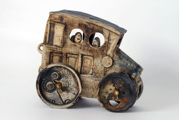 Marian Daems (Amsterdam 1966) bouwt voertuigen, vaartuigen, mensen en gebouwen uit platen klei. De huid van haar werkstukken is niet glad, maar wordt bewerkt met verschillende soorten klei en structuren. Dit zorgt voor de kenmerkende textuur in haar werk. Marian Daems wil dat de klei zichtbaar blijft: klei moet kunnen blijven ademen en niet verdwijnen…